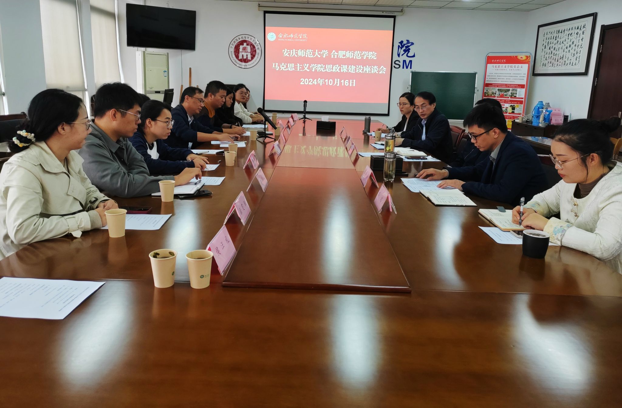 10月16日,学院副院长余江舟带领“习近平新时代中国特色社会主义思想概论”教研室和“形势与政策”教研室教师代表等一行10人赴合肥师范学院太阳成集团tyc7111开展调研交流。合肥师范学院太阳成集团tyc7111党总支副书记吴世红、副院长方政和相关教研室负责人等参加交流。