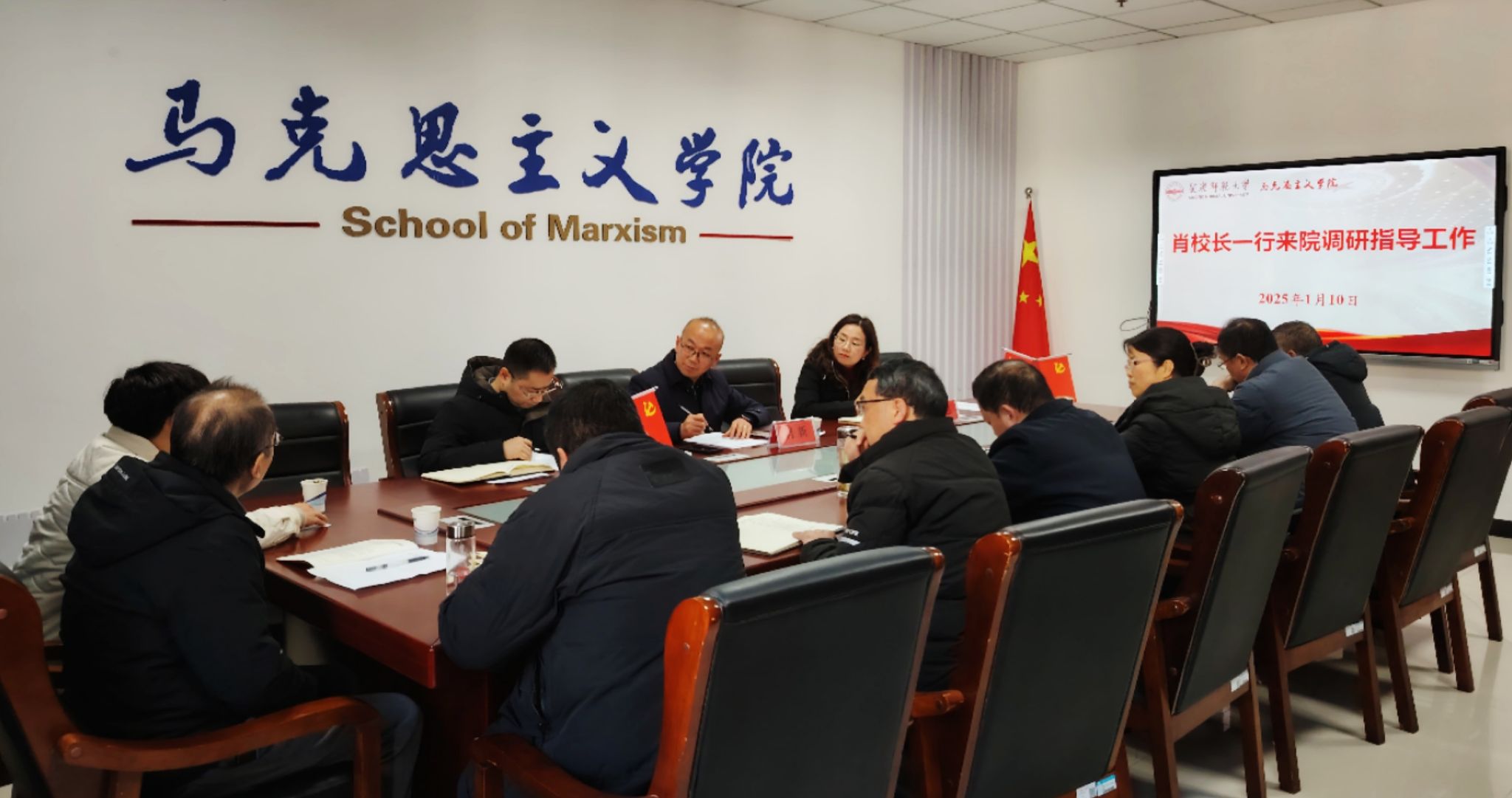 1月10日, 学校党委常委、副校长肖新率科研处和学科建设处负责人一行来学院调研指导工作。学院领导班子成员、学科方向负责人、教研室主任以及博士教师参加调研座谈会。