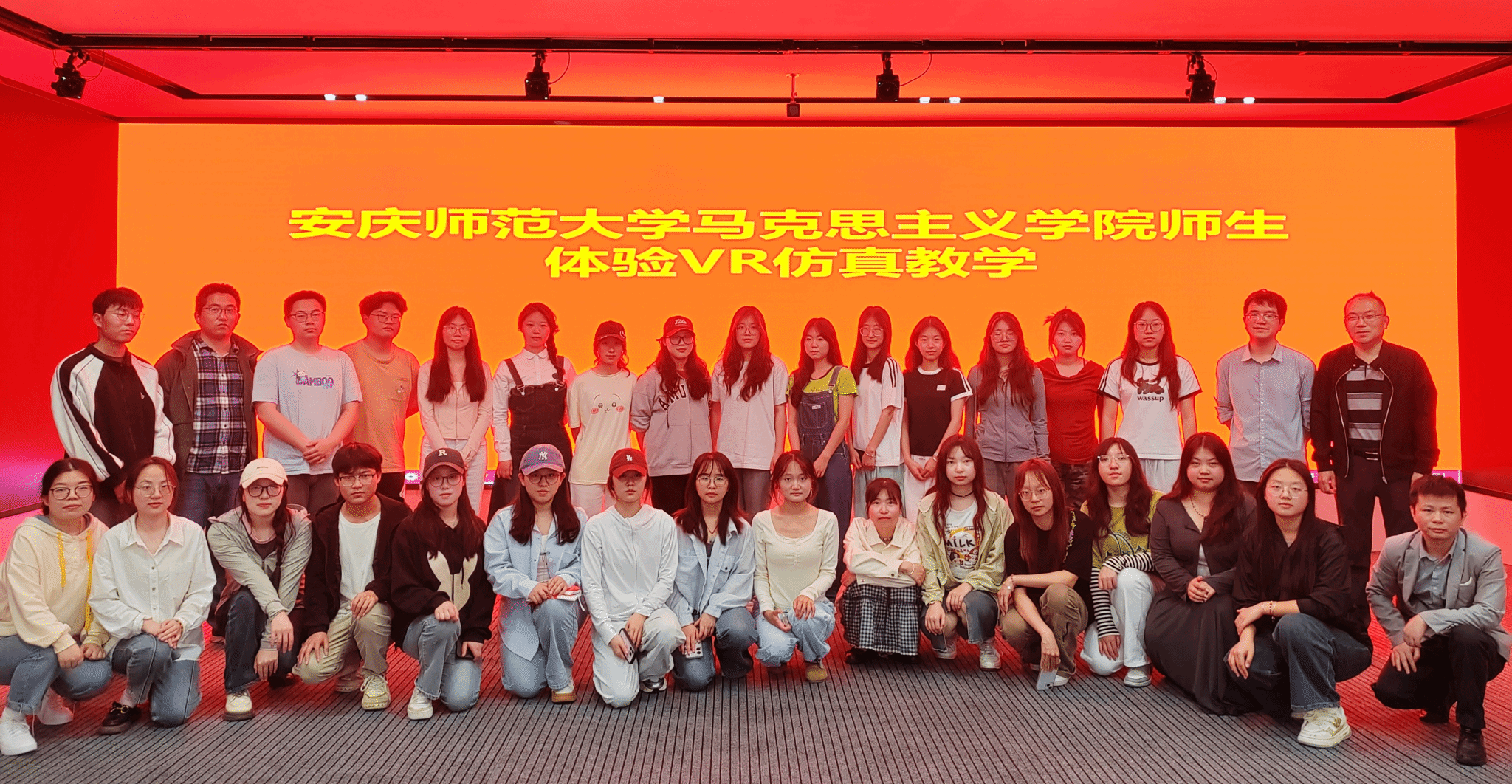 4月17日,中国近现代史纲要教研室全体专职教师以及2023级延乔班学生赴安庆医药高等专科学校太阳成集团tyc7111思政课虚拟仿真实验室参观,沉浸式体验思政课VR虚拟仿真教学。
