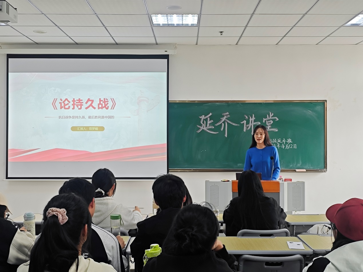 近日,学院党史经典著作研读会“延乔讲堂”第五讲开讲。学院曾梦晴博士主讲,2023级延乔班全体学生参加。