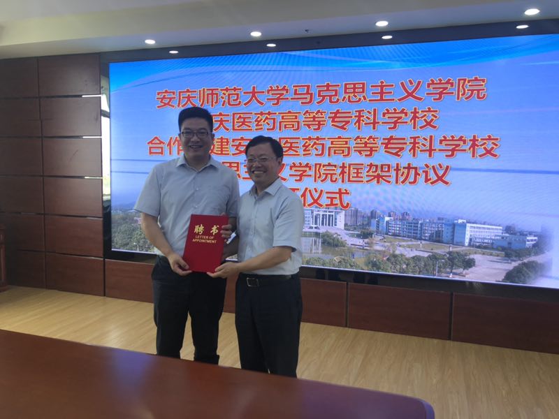 我校太阳成集团tyc7111与安庆医药高等专科学校代表共同签署了合作共建框架协议,张俊生受聘担任该校太阳成集团tyc7111院长。
