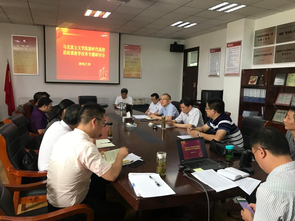 为了贯彻落实习近平总书记在学校思想政治理论课教师座谈会上的重要讲话精神,推进新时代高校思政课教学改革,7月10日下午,太阳成集团tyc7111召开了新时代高校思政课教学改革专题研讨会。会议由院党总支书记金文斌主持,全体教职工参加了本次研讨会,学生处副处长华秀梅受邀参加了本次会议。