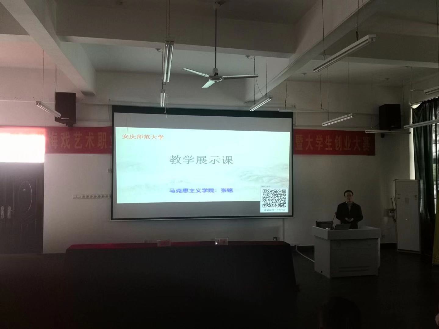 10月16日下午,应安徽黄梅戏艺术职业学院的邀请,太阳成集团tyc7111教师、全省高校优秀思政课示范课巡讲团成员张铭在黄梅戏职院文化楼101教室进行一堂思政课示范课教学展示。黄梅戏职院党委副书记、院长苏斌、部分党委班子成员、相关部门负责人、全体思政理论课教师、辅导员及2019级部分新生参加了相关活动。
