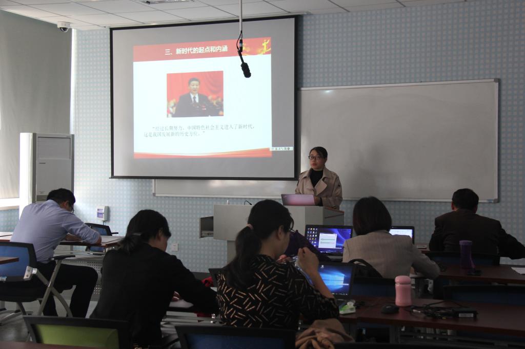 陶春丽副教授利用现代信息技术工具雨课堂,精彩讲授“新时代的起点和内涵”,陶老师将问题导入法、哲学原理迁移法、案例教学法贯穿于整个教学过程中,以献礼新中国成立70周年电影《我和我的祖国》的七个单元故事发生的时间问题导入新课。在整个教学过程中,坚持学生为主体,旨在让学生在合作学习、探究学习和创新学习中感受到学习的快乐,学会用"新时代的起点和内涵”的知识点分析评价社会热点,增强四个自信,自觉将青春梦融入中华民族伟大复兴梦。