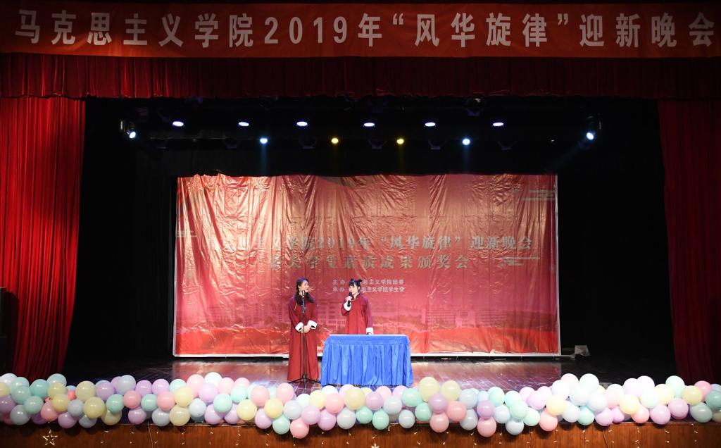 晚六时许,音乐厅已然座无虚席,厅前过道早已挤满人群。“在这辞旧迎新之际,首先由我来带领大家回顾一下我们学院2019年所取得的主要成绩……”晚会开始前,学院党总支书记金文斌对学院师生取得的成绩表示肯定并对师生们表达美好祝福。伴随着全场的欢呼声,晚会正式拉开帷幕。