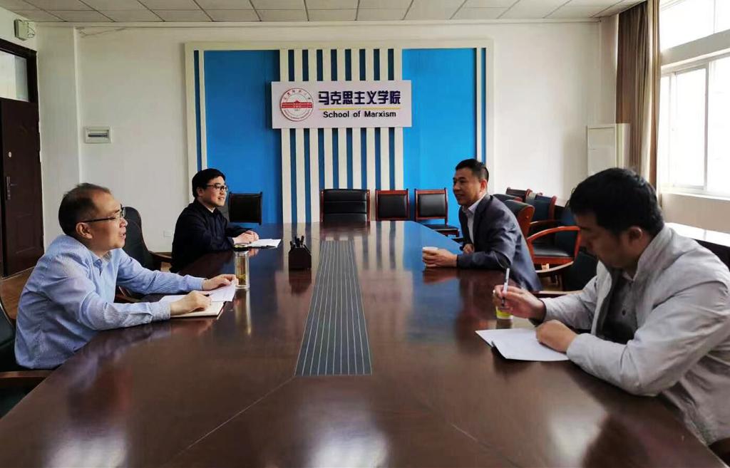 5月18日上午,安庆市直机关工委副书记宋宜玺、组织部长王纪海来学院商谈党建合作事宜。学院党委书记金文斌热情接待了宋宜玺一行。