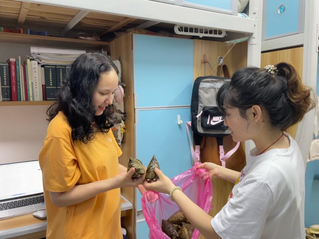 2021级学科思政专业边甜甜说“这样的节日,大家其实都很想家,学院给省外研究生发放粽子,我很感动。学院就像家一样,在学院体会到了家的温馨。”