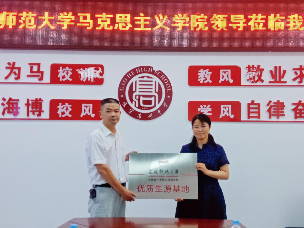 近日,学院院长严仍昱、副院长张俊生、概论教研室主任黄海东、青年教师张雅一行四人赴怀宁中学和高河中学开展本科招生宣传和毕业生回访活动。