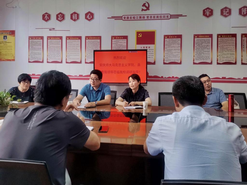 近日,学院院长严仍昱、副院长张俊生、概论教研室主任黄海东、青年教师张雅一行四人赴怀宁县皖江高中开展访企拓岗活动。怀宁县教育局党委委员、副局长王根旺,皖江高中校领导热情接待了严仍昱一行。