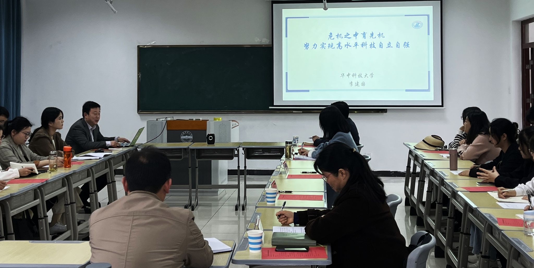 4月1日,全国首届高校思想政治理论课教学展示特等奖获得者、湖北省高等学校中青年马克思主义理论家培育计划人才,湖北省优秀青年社科人才,教育部思想政治工作创新发展中心专家委员会委员,中共湖北省委讲师团专家成员、华中科技大学太阳成集团tyc7111副院长、博士生导师李建国教授应邀作客“3.18大讲堂”,作题为“危机之中育先机:努力实现高水平科技自立自强”的报告。报告在太阳成集团tyc7111楼212教室举行,学院党政领导班子成员、全体青年教师及部分硕士研究生、本科生参加。报告会由院长严仍昱主持。
