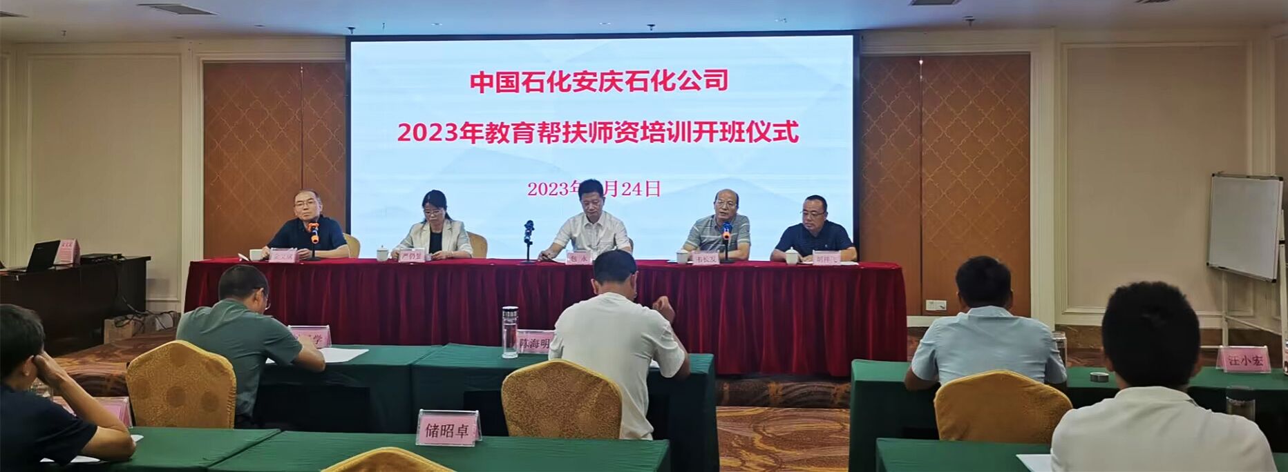 7月23日-29日,由学院承办的中国石化安庆石化公司2023年教育帮扶师资培训班在我校举办。来自岳西县响肠石化小学32名老师参加本次专场培训。安庆石化办公室副主任包永,岳西县响肠石化小学校长胡祥飞,院长严仍昱、继续教育学院院长韦长发及项目组全体成员参加了开班式,开班式由金文斌教授主持。
