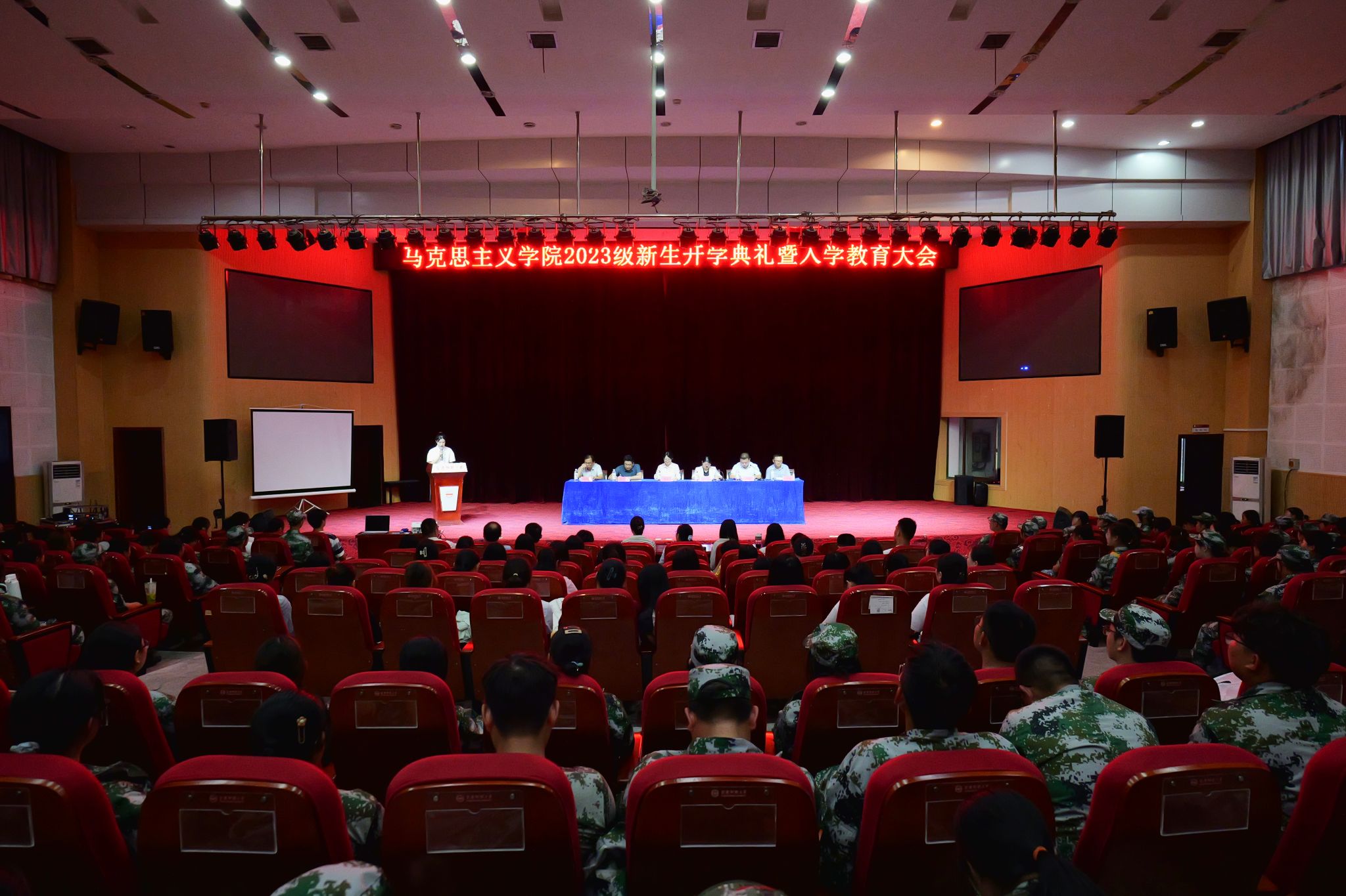 严仍昱在典礼上致辞,她代表学院全体师生对2023新生的到来表示诚挚的问候和热烈的欢迎,介绍学院基本情况和发展历程,希望广大新生要胸怀天下,做坚定的马克思主义者;要艰苦奋斗,做幸福的奋斗者;要严于律己,做德智体美劳全面发展的社会主义合格建设者和接班人。教师代表章林发言时要求广大新生持续保持自身活力,认真上课听课,积极阅读经典,坚持锻炼身体,努力成长为一名优秀的马克思主义者。邹斌告诫新生牢记师长嘱托,秉持“敬敷世范,勤学笃行”的校规校训,以马为始,不负韶华,在四年的大学生活中遇见更好的自己、更好的同学、更好的学院、更好的学校。本科生新生代表李康乐、研究生新生代表李博文、本科生老生代表陈汪涵在典礼上发言。
