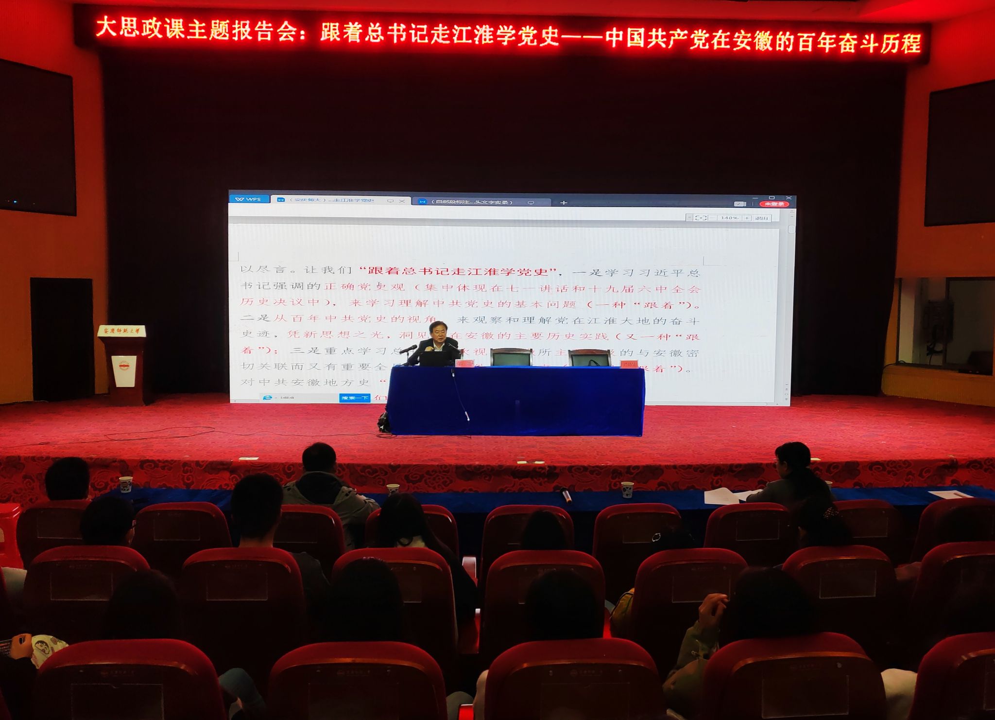 严仍昱在总结时指出,报告系统回顾了中国共产党的百年历史,党在江淮大地上的奋斗史,政治站位高、主题鲜明、感染力强,进一步营造了学史明理、学史增信、学史崇德、学史力行的良好氛围。希望同学们会后认真学习和消化报告内容,在百年党史的学习中深刻感悟今天幸福生活的来之不易,树牢马克思主义信仰和中国特色社会主义信念,坚定跟党走的信心和决心,争做有理想、敢担当、能吃苦、肯奋斗的时代新人。