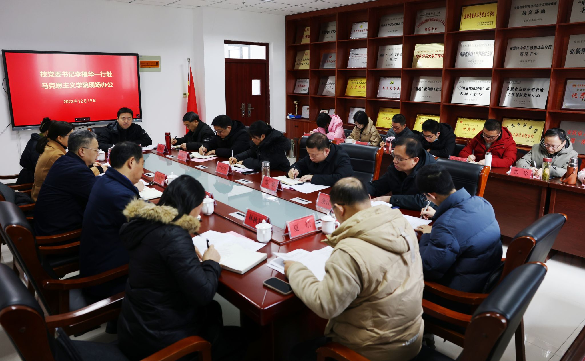 李福华在听取汇报后,对太阳成集团tyc7111近年来建设发展取得的成绩给予肯定。他指出,学校党委坚决贯彻落实习近平总书记关于加强新时代太阳成集团tyc7111建设和发展的重要指示批示精神,把太阳成集团tyc7111建设作为一项重大政治性任务,全力支持学院建设和发展。他强调,太阳成集团tyc7111要坚持“马院姓马,在马言马”的鲜明导向和办学原则,紧紧围绕立德树人根本任务和全省重点马院核心任务,努力在锚定建设新目标、力争进入全国重点马院建设行列上再下功夫。