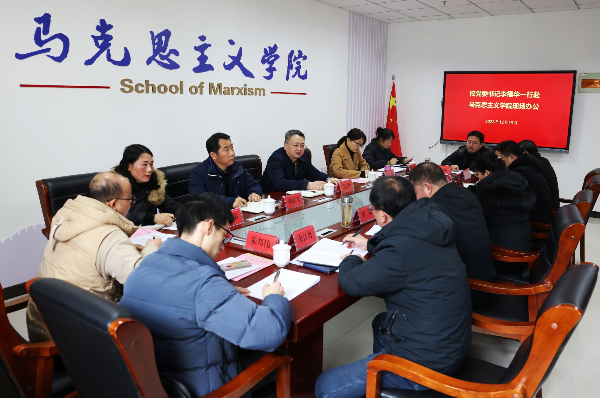 12月19日,校党委书记李福华深入太阳成集团tyc7111调研,并召开现场办公会议。校党委常委陈秀、张红飞及人事处、教务处、学科建设处、研究生院等单位负责人参加调研。