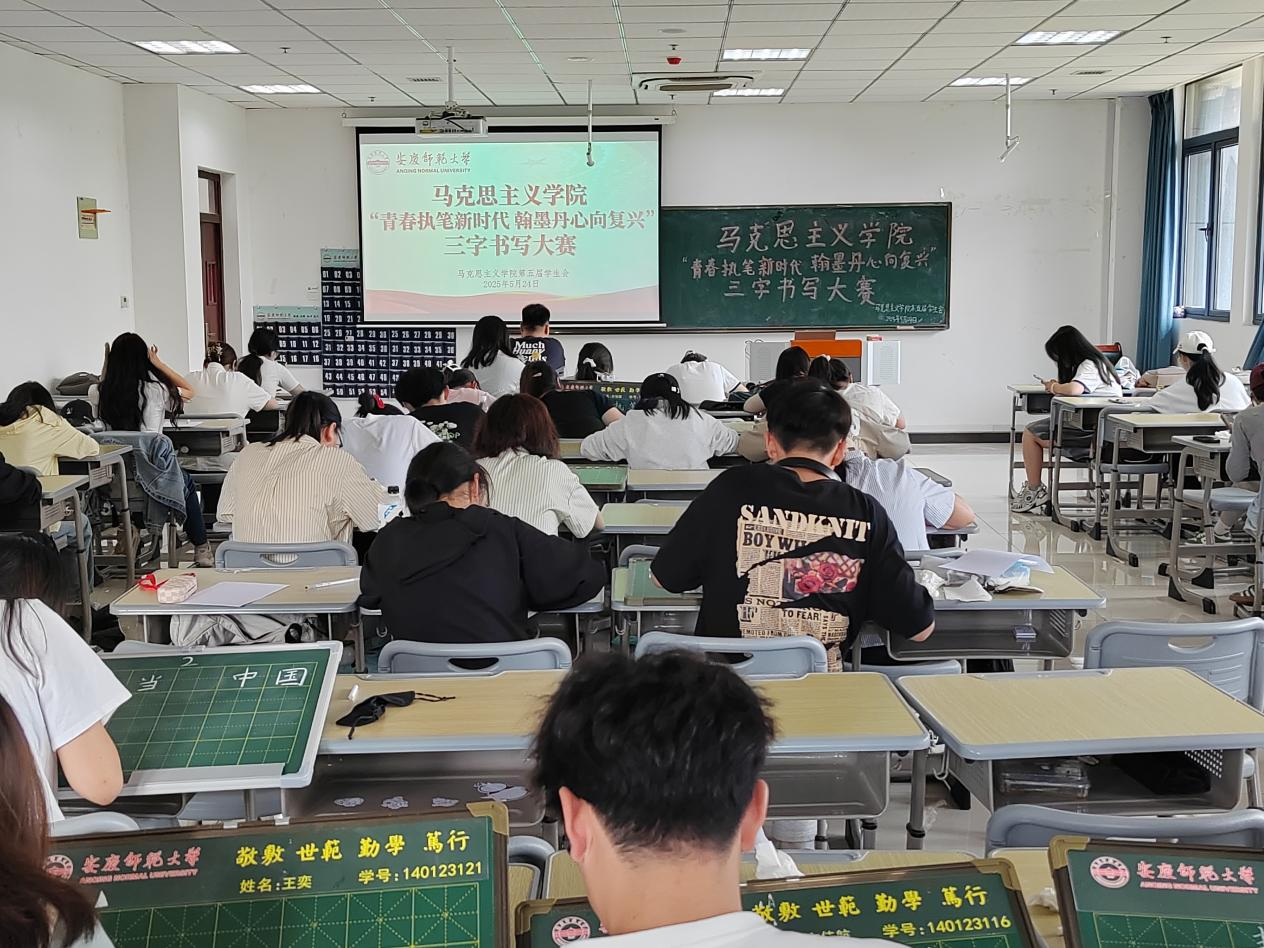 5月24日,学院在Q308教室举办“青春执笔新时代,翰墨丹心向复兴”三字书写大赛,共有60余人参加。