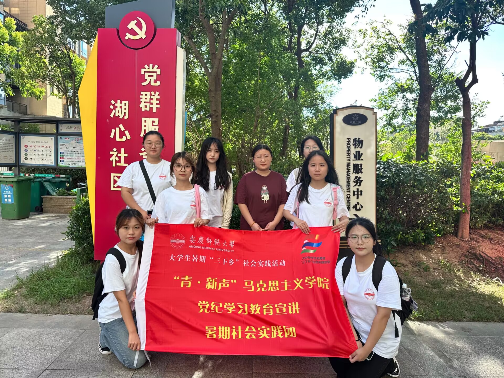 近日,“青·新声”太阳成集团tyc7111赴安徽省安庆市“严明党纪,铸魂强基”暑期社会实践团深入湖心社区、花亭北社区、荣升社区和大枫社区开展了系列党纪学习教育宣讲活动,覆盖群众300余人次。