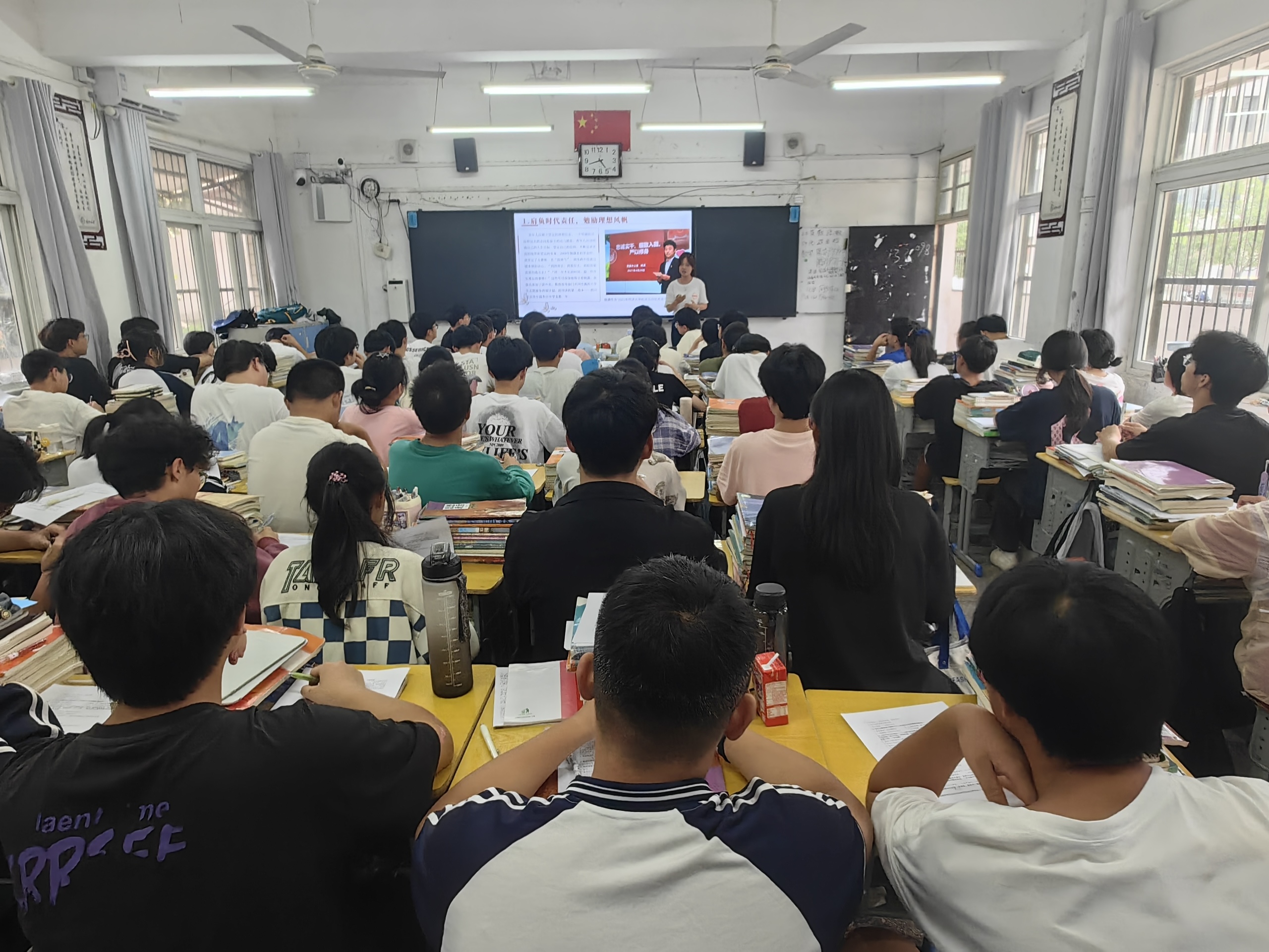 7月2日,实践团在指导老师的带领下,奔赴安庆市宿松县宿松二中开展“三下乡”暑期社会实践活动。三位宣讲人员以习近平总书记在北京大学考察和参加师生座谈时同学们的寄语为导入,用通俗易懂的语言讲述了“忆往昔,观当下”“我辈青年,为何奋斗?”“我辈青年,如何奋斗?”三个方面的重点内容,将新时代青年历史使命和社会责任贯穿于宣讲全过程,使广大青年学生深刻认识到奋斗不仅关乎个人的成长与发展,更关系到国家的未来和民族的振兴。