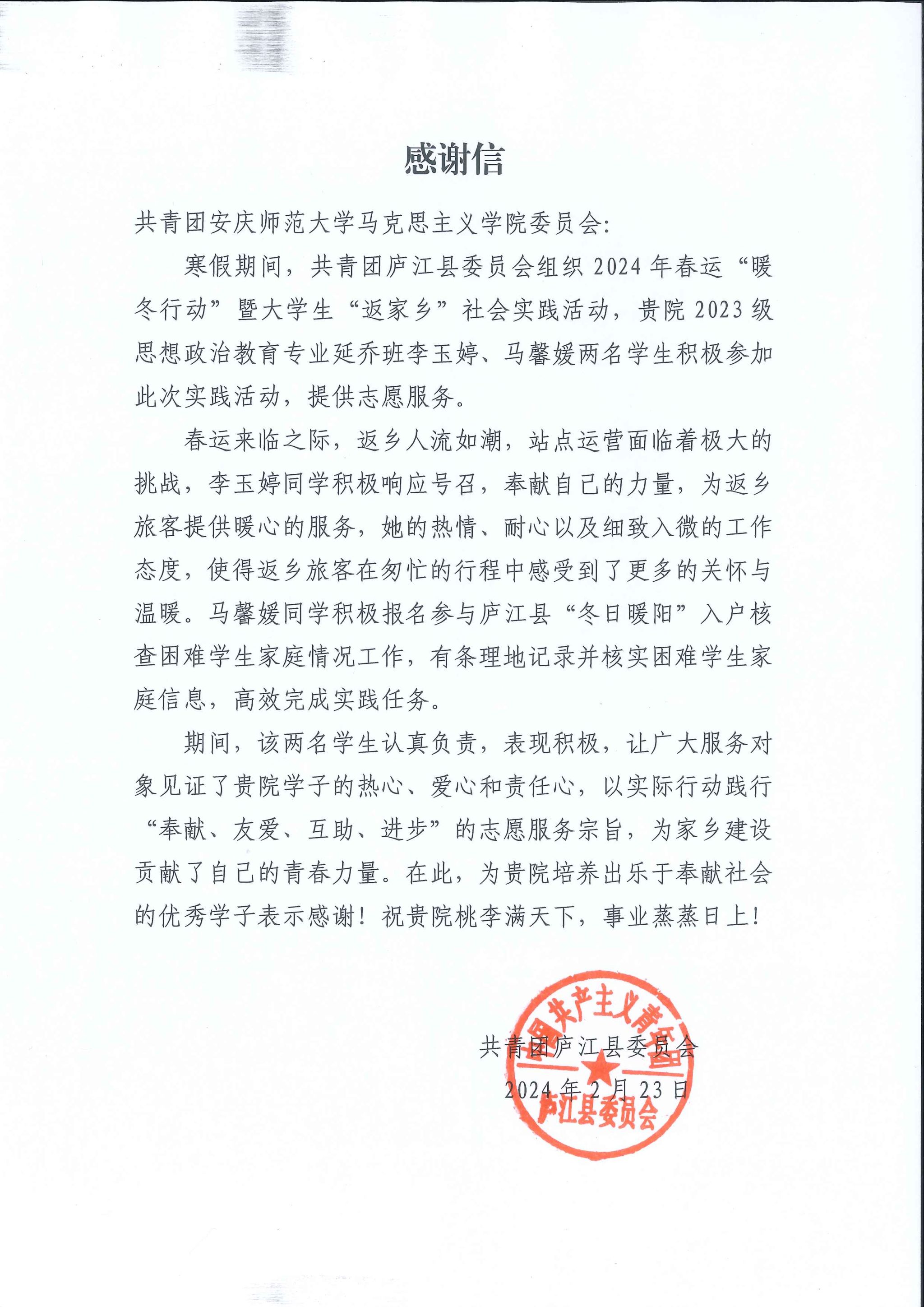 寒假期间,2023级思想政治教育专业延乔班共18人次参加,占班级人数的64.28%。思想政治教育专业2023级延乔班李玉婷参加了返乡潮高铁站服务志愿活动与社区服务,她在谈及本次活动中说到,“这次实践活动为我们青年创造了一个更深入理解社会、服务社会的平台,作为一名思想政治教育专业的学生,我会将本次的收获与所学专业知识融合,在未来为更多人提供更优质的帮助,为家乡和社会发展贡献力量。”思想政治教育专业2023级延乔班张子琪主动报名参加了由共青团蚌埠市委员会、蚌埠市交通运输局联合举办的蚌埠南站交通执法实践活动。通过寒假的“返家乡”社会实践活动,不仅增长了知识、提升了能力,更重要的是增强了对家乡的归属感和对社会的责任感,也丰富了个人志愿服务经历。