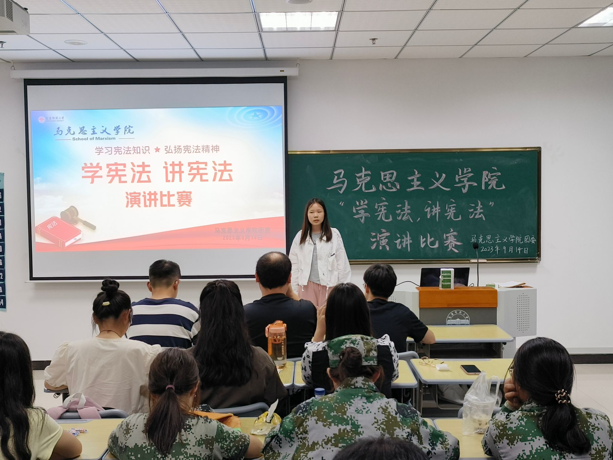 9月14日,学院团委在Q305举办“学宪法,讲宪法”演讲比赛,共有8名选手参赛,近60名同学到场观摩。