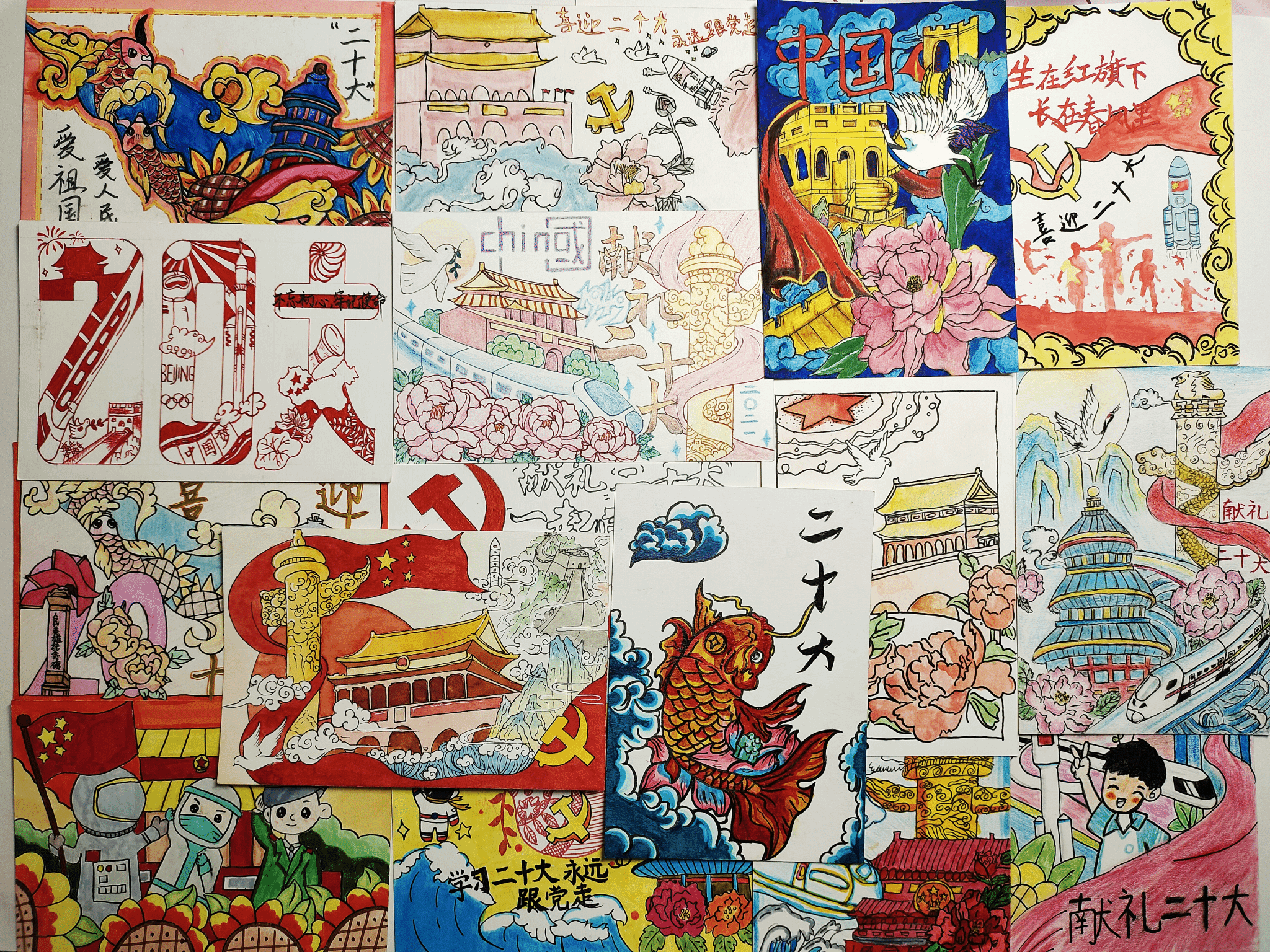 党的二十大是党在新征程的重要时刻召开的一次十分重要的会议,是党和国家政治生活中的一件大事。本次活动,学生通过明信片进行绘画创作,结合身边变化发展,将自己的所思所感呈现在小小的方块卡片上,以小故事诉说大成就,以小细节折射大变化,赓续红色血脉,筑梦百年征程。