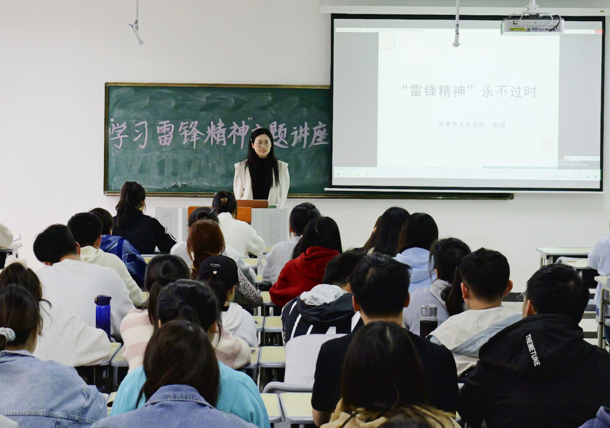 “人的生命是有限的,可是,为人民服务是无限的,我要把有限的生命投入到无限的为人民服务中去。”3月10日,学院举办“雷锋精神永不过时”主题讲座,教师赵涵从“雷锋其人其事”“雷锋精神的主要内涵”“雷锋精神的永恒价值和时代内涵”三个方面展开讲述。她希望学生们学习雷锋无私奉献、刻苦钻研的精神,在一次次的学习实践中练就本领、砥砺奋进,永远向上、永远为善。