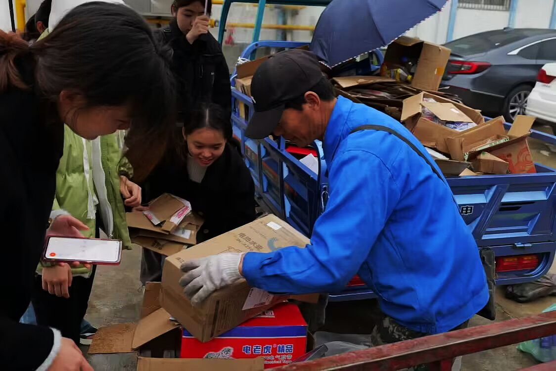 志愿者们先与报名学生取得联系,约好时间上门回收,再将废品收集整理卖给收购商。据活动负责人、思想政治教育专业2021级(2)班的丁静媛介绍,活动结束后,工作人员会将废品回收所得资金为学院对接社区的学生购置学习用品。“我们这次活动将公益与环保理念相结合,既能够实现资源的回收再利用,解决同学们的旧物处理问题,美化校园环境,同时也向社会传递了一份温暖。”