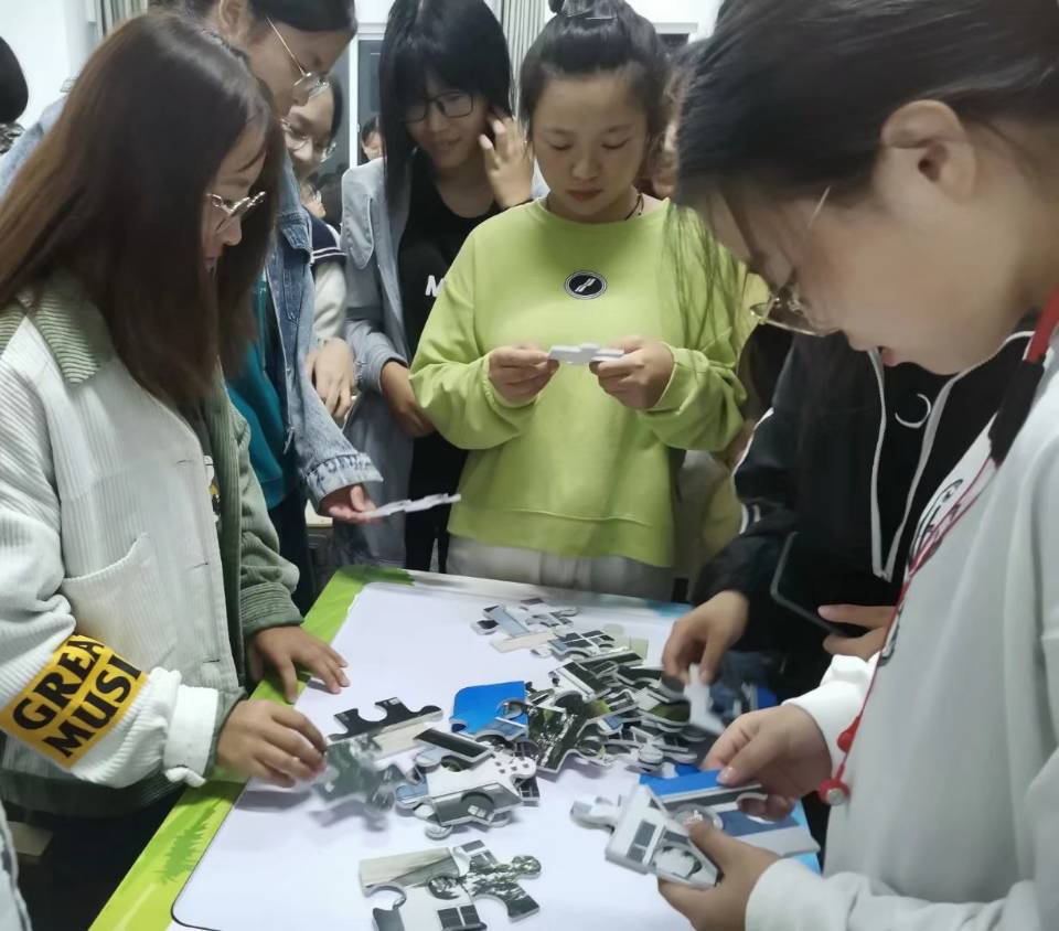 活动开始前,学院2020级新生将开学报道时领取的拼图汇聚成三福校园风景画,增进了班集体的凝聚力。思想政治教育专业2020级3班潘燕在采访时说道,“学长学姐们别出心裁,将学校摄图制作为拼图,在入校时一同配给,联络彼此感情,每个同学都是班集体不可缺少的一份子。”