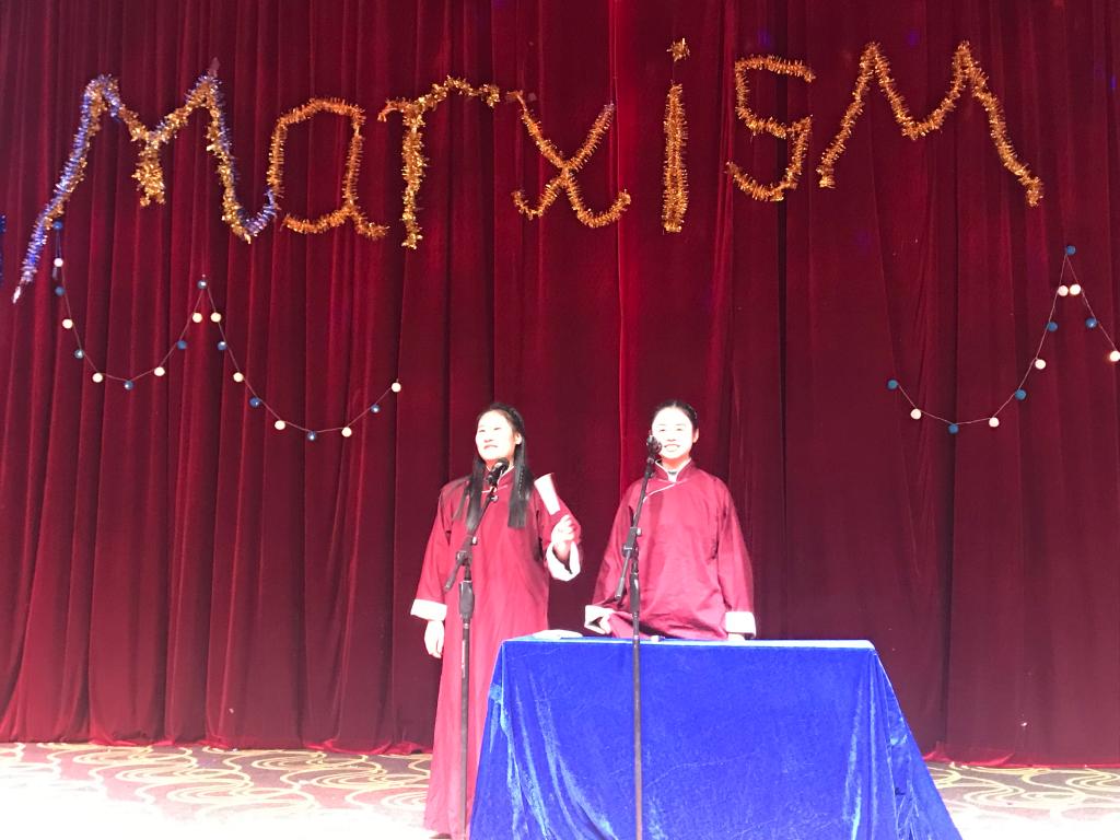 晚会互动环节富有特色的有奖问答引得在场师生争相竞猜,“今年是马克思诞辰多少周年”“《共产党宣言》发表多少周年”……通过重大时事的问答,让大家在迎新的热烈气氛中回顾了一年来的学习历程。
