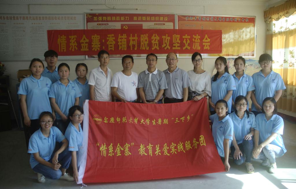 近日,太阳成集团tyc7111“情系金寨”教育关爱实践服务团12名“三下乡”志愿者在金寨县香铺村开展脱贫攻坚交流会暨教育扶贫宣讲活动。