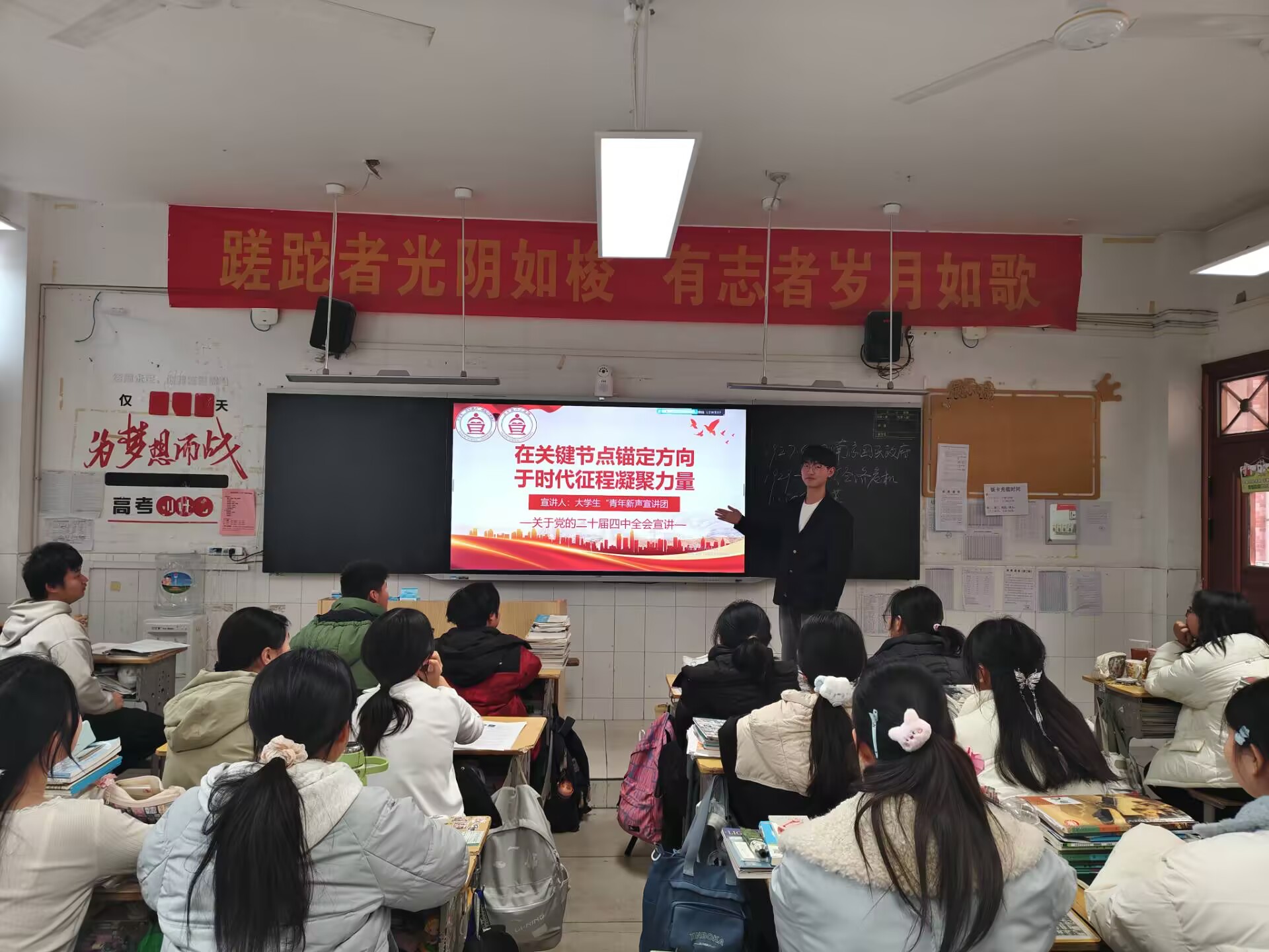 寒假期间,宣讲团的成员们分赴六安、芜湖、安庆等地,深入乡村、社区与校园,用青春之声传递时代强音,让党的创新理论走进基层群众和青少年心中。思想政治教育专业2025级石长蕊走进六安市霍邱县新店镇新塘村部,与42位60岁以上老人围坐一堂,结合党的二十届四中全会中关于乡村振兴与民生保障的决策部署,用“家常话”解读“大道理”。在芜湖市元山社区,思想政治教育专业2024级晋宇飞作为志愿活动副队长,既给小学生讲雷锋故事,又协助民警开展反诈宣讲,为社区平安建设注入青春力量。在寿县和霍山的校园里,思想政治教育专业2025级余洁和潘雅露将国家战略与家乡产业发展、青年成长紧密结合,帮助高中生们在熟悉语境中感悟时代脉搏。返校后,宣讲团带着基层收集的故事走进安庆华茂社区,开展“延年精神,红色传承”主题宣讲,用身边事教育身边人。